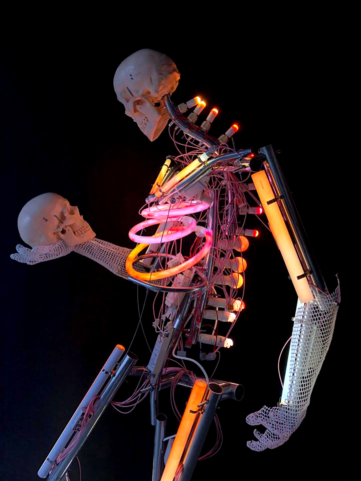 The bones and organs in this machine like skeleton are transformed into lighting elements, which contain energy and vivid colours. Advanced technology makes replacing of our organs, bones, tissue and even our entire body soon possible.